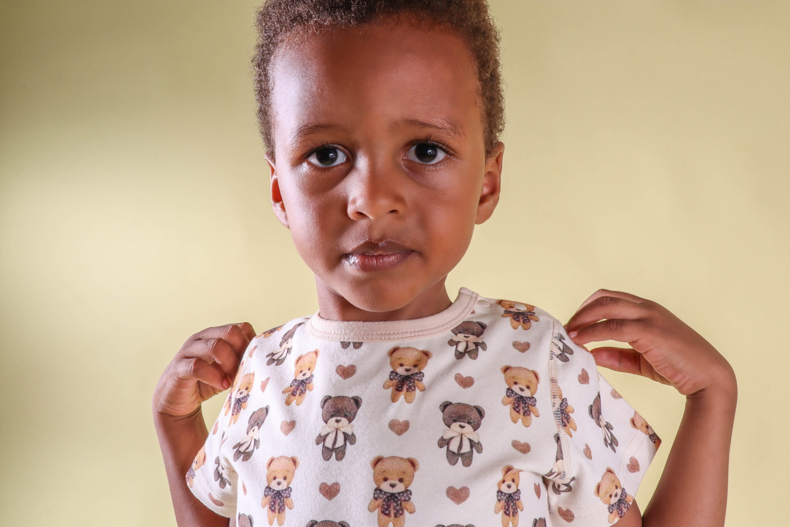 “Voyage Seeker” T-Shirt and Short Set: Ignite your little one’s sense of adventure and creativity with this charming ensemble. Featuring a combination of brown and caramel colors, it evokes a playful and earthy vibe.